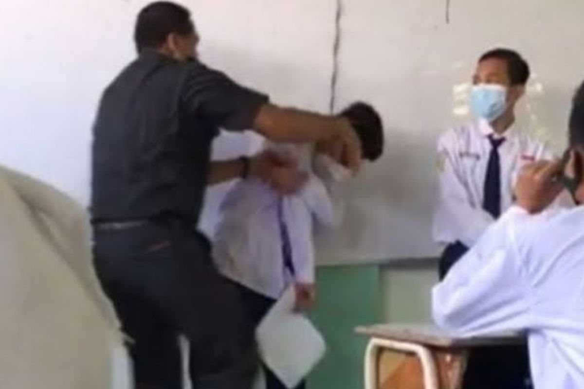 Tiba-tiba, seorang guru berdiri dari tempat duduknya dan langsung memukul siswa tersebut sambil mengumpat.