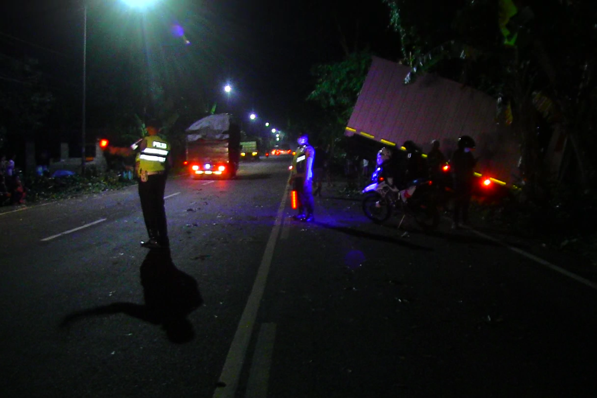 Truk tiba-tiba oleng hingga menabrak pohon di pinggir jalan ketika melewati jalanan menurun.