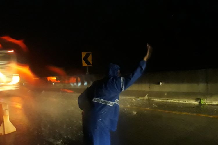Petugas Jasa Marga saat mengatur lalu lintas kendaraan di Tol Pandaan Malang