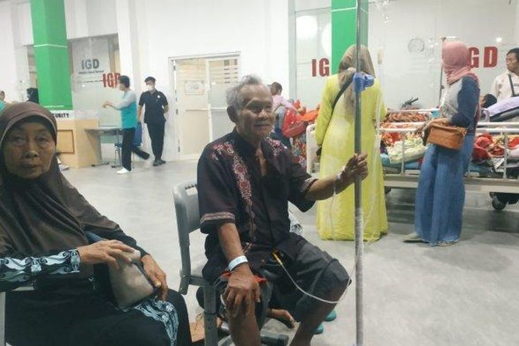 Sejumlah pasien RSUD dr Darsono Pacitan, Jawa Timur, terlihat berada di teras IGD ketika gempa magnitudo 6 mengguncang Bantul, DI Yogyakarta.