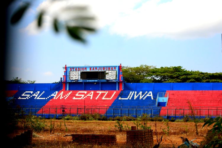 Situasi dalam stadion pasca Tregedi Kanjuruhan yang mulai pelaksanaan renovasi dan revitalisasi di Stadion Kanjuruhan Kepanjen, Kabupaten Malang, Selasa (19/9/2023) siang.