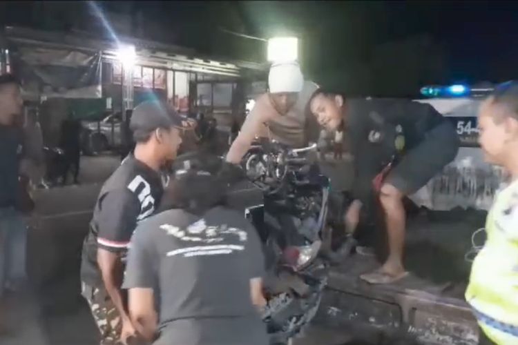 Polisi Ngawi saat mengamankan dua motor yang terlibat tabrakan dan menewaskan dua orang, Selasa (18/6/2024) malam.