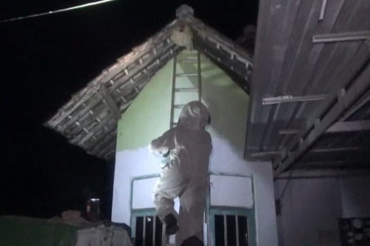 Petugas dari Damkar Kabupaten Jombang, Jawa Timur, menangani pemusnahan sarang tawon vespa, di Desa Dukuhklopo, Kecamatan Peterongan, Rabu (31/10/2024).
