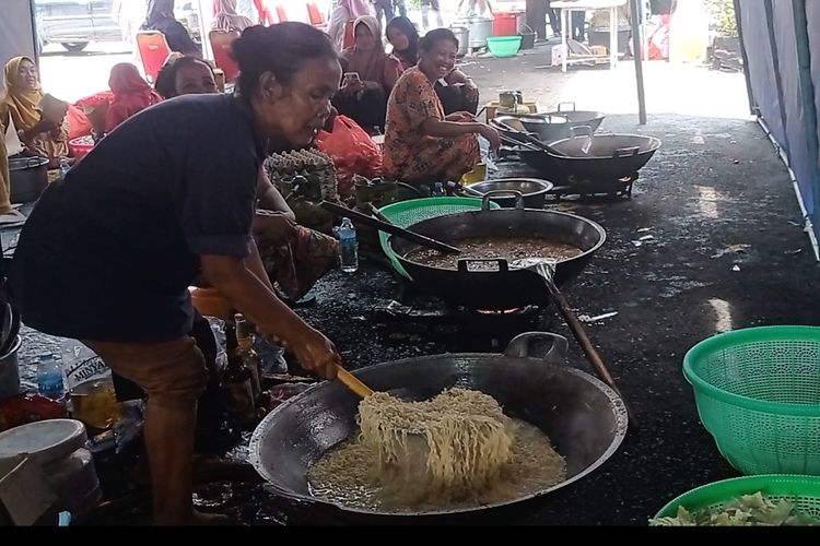 Kegiatan dapur umum di Pendopo Agung Kabupaten Ponorogo yang memasak 20.000 nasi bungkus untuk dibagikan kepada masyarakat terdampak banjir di tujuh kecamatan.