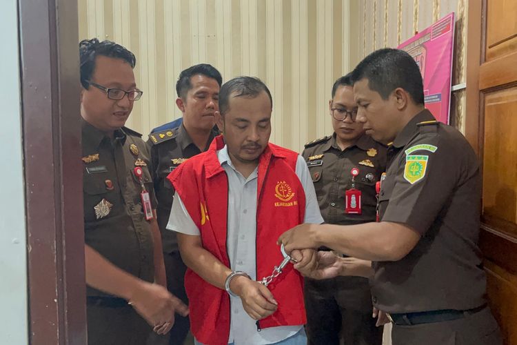 Kepala Desa Ngepung, Kecamatan Patianrowo, Kabupaten Nganjuk, Hendra Wahyu Saputra, saat ditahan Kejari Nganjuk, Kamis (5/6/2025)