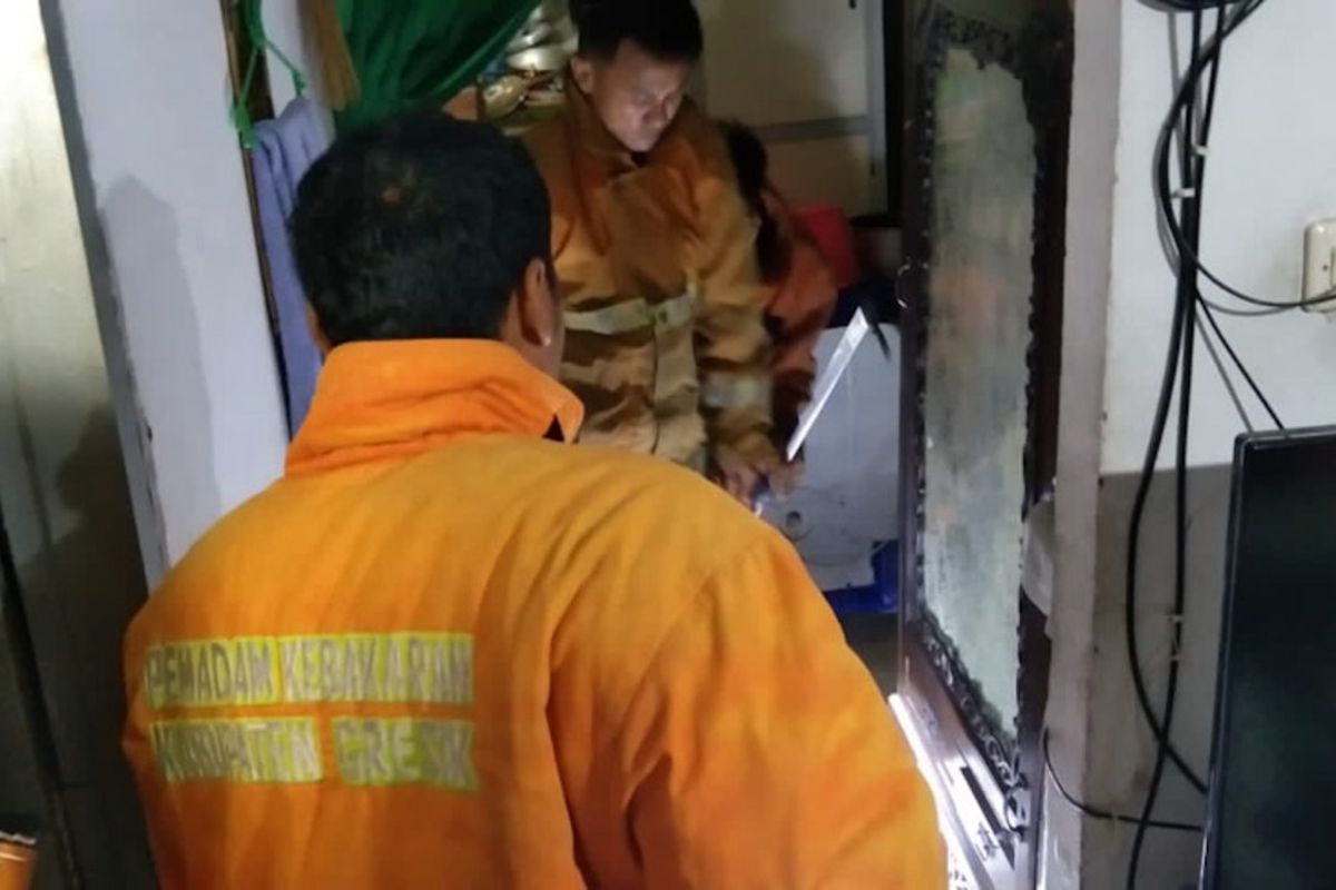 Ular sanca sepanjang 2 meter itu berhasil dievakuasi oleh 7 petugas Damkar Gresik.