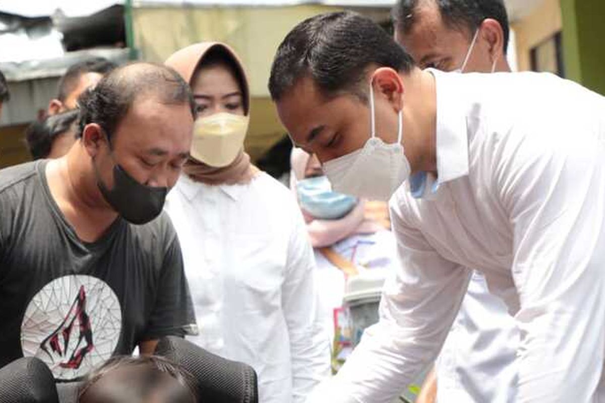 SURABAYA, KOMPAS.com - Wali Kota Surabaya Eri Cahyadi mengunjungi rumah anak penderita hidrosefalus, Sharga Raditya Nugraha dan adiknya Tanaka Al Faruq.