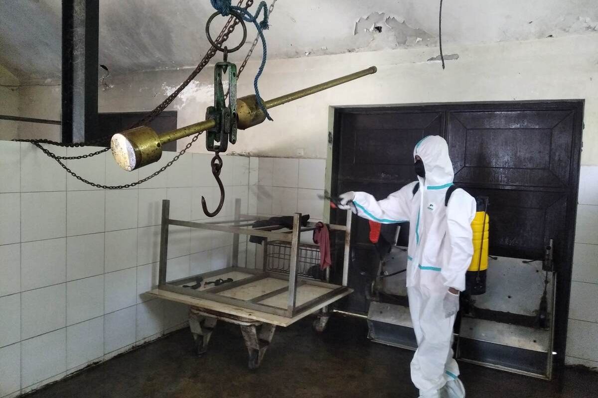Sebagai langkah penanganan, Pemerintah Kabupaten (Pemkab) Nganjuk melakukan penyemprotan disinfektan di semua pasar hewan dan rumah potong hewan (RPH) di Nganjuk.