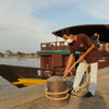 Untuk susur sungai, penumpang kapal diwajibkan menggunakan pelampung untuk keselamatan.