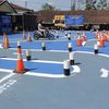 Tampak pemohon SIM di Satpas Polres Malang secara bergantian mengikuti ujian praktik lintasan baru di Satpas Polres Malang, berbentuk S. Terlihat mayoritas pemohon SIM lolos melalui jalur pelintasan ujian praktik tersebut.