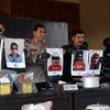 Beberapa senjata api, ratusan peluru, ponsel, laptop, kamera, dan bendera yang terafiliasi ISIS dijejerkan di teras rumah DE.