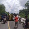 Pikap itu meluncur di jalan turunan seperti hilang kendali usai, lalu menabrak beberapa orang di depannya, termasuk Ali Zaini sendiri.
