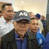 Mereka pun sudah disambut sejumlah buruh di depan pintu masuk stadion.
