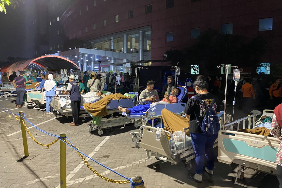 SURABAYA, KOMPAS.com- Sejumlah pasien di Rumah Sakit Universitas Airalangga (RSUA) Surabaya, dipindahkan ke tempat parkir imbas terjadinya gempa beruntun di Tuban, Jawa Timur, Jumat (22/3/2024). Dua gempa besar tersebut masing-masing berkekuatan M 5,9 dan M 6,5.