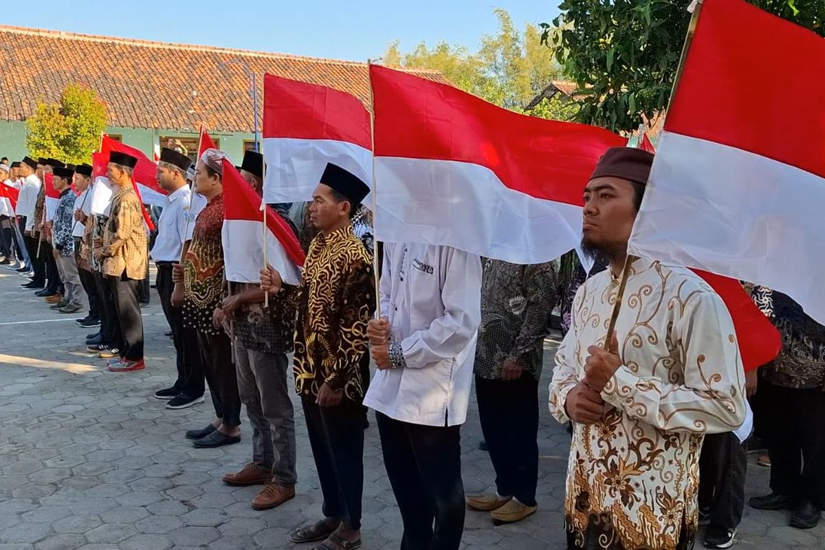 MADIUN, KOMPAS.com - Sebanyak 150 eks anggota Jemaah Islamiyah (JI) menyatakan ikrar setia kepada Negara Kesatuan Republik Indonesia (NKRI) saat mengikuti upacara peringatan Hari Ulang Tahun (HUT) ke-79 Kemerdekaan Republik Indonesia di halaman Pondok Pesantren Al Ihsan, Kebonsari, Kabupaten Madiun, Jawa Timur, Sabtu (17/8/2024).