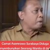 Sebelumnya, video yang viral menunjukkan sekelompok anggota organisasi masyarakat (ormas) menggeruduk kantor Kecamatan Asemrowo dan menemukan seorang wanita bersembunyi di bawah meja kerja camat.