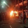 Sejumlah massa melemparkan berbagai benda dan kembang api.