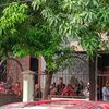 Puluhan orang terlihat mengenakan kemeja, beberapa di antaranya memakai seragam Pemuda Pancasila (PP), yang memenuhi halaman rumah dengan pagar cokelat dan tembok berwarna putih itu.