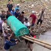 Video berdurasi 28 detik tersebut memperlihatkan sejumlah warga menggotong keranda jenazah melintasi sungai demi menuju pemakaman yang berada di seberang sungai.