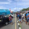Jalan Frontage yang digunakan untuk titik kumpul aksi tidak dapat dilewati, sehingga pengendara umum diarahkan ke Jalan Raya A Yani sisi kanan.