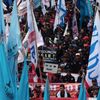 Pertama, mereka menuntut penghapusan sistem outsourcing dan penolakan terhadap upah murah.