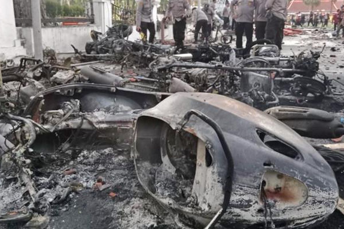 Setidaknya ada enam motor yang terpantau dibakar oleh amukan massa.
