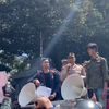 Petugas polisi berupaya menghalaunya menggunakan semprotan air dari mobil water canon. Sejumlah personel tentara juga berupaya menghalau massa.