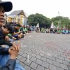 Menjelang magrib, massa masih terus melakukan aksi demonstrasi. Sedangkan sejumlah massa lainnya tampak berkumpul di Taman Sekartaji.