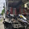 Bahkan, kerasnya hantaman membuat boks berisi es krim itu terlepas dari badan kendaraan dan turut terguling di samping mobil itu. Kendaraan mengalami ringsek hingga kaca depan kemudi pecah.