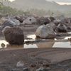 Dari video amatir warga yang diterima Kompas.com, material banjir tampak berwarna hitam dengan tekstur kental dan mengeluarkan asap panas.
